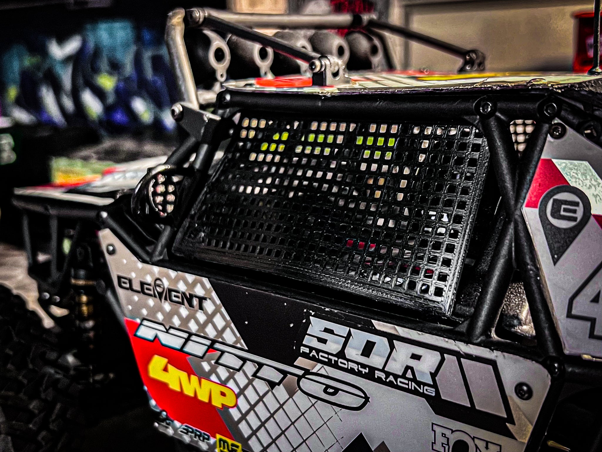 Printed out of nearly indestructible TPU, these window nets feature a realistic looking tight mesh design, secure to the cage with 2 mounting points, and have tabs on the bottom for tucking behind panels or glueing.