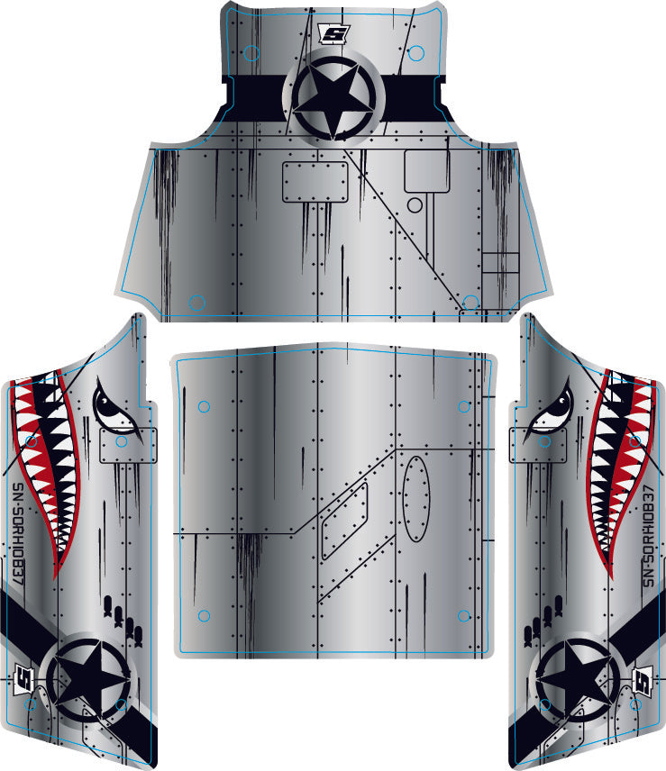 One of motorsports most popular liveries- the Flying Tiger. Now available in a polished aluminum looking viny that’s laminated in our durable gloss finish. Available for-